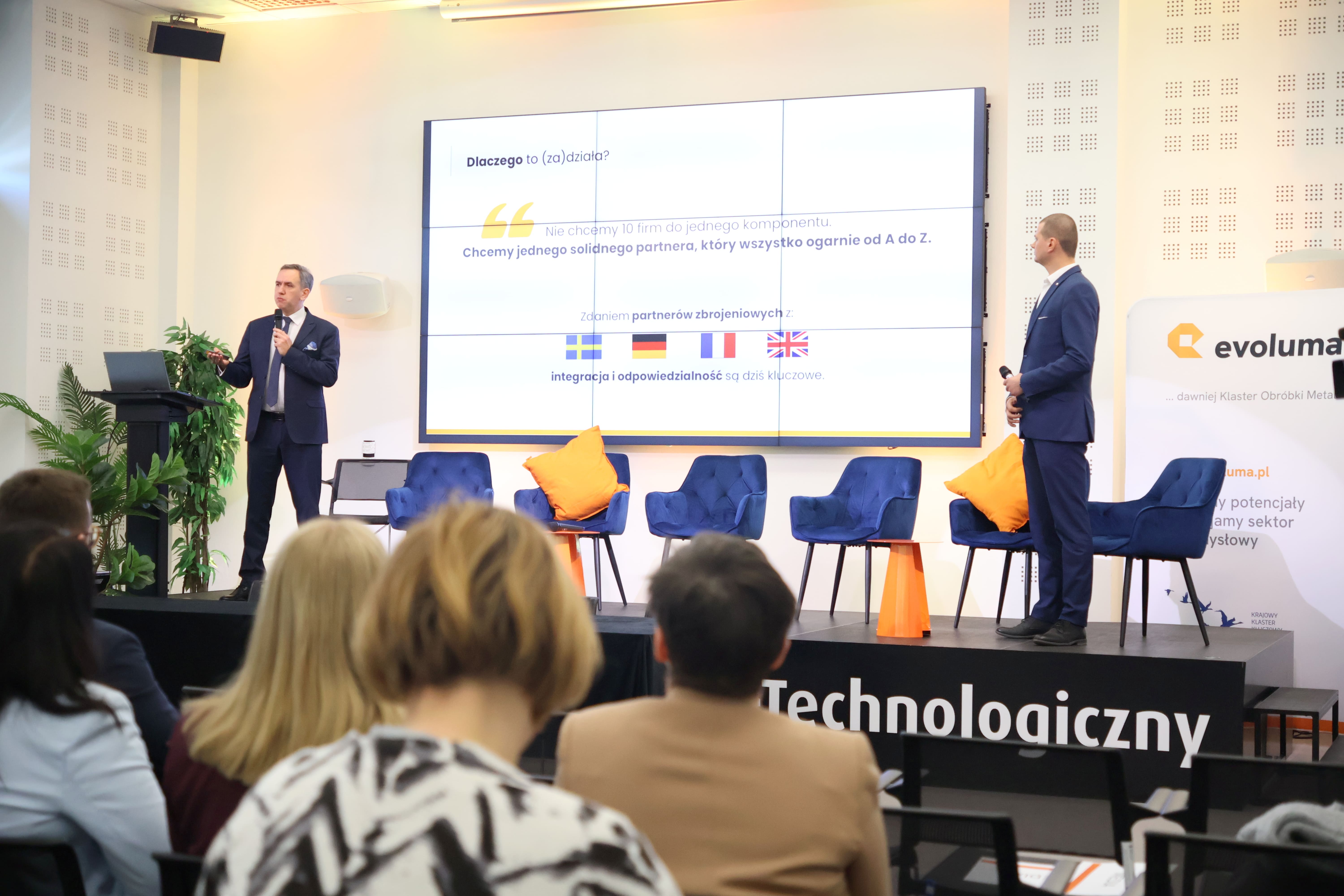 Podczas wydarzenia przedstawiono kluczowe prezentacje dotyczące współpracy z sektorem obronnym.